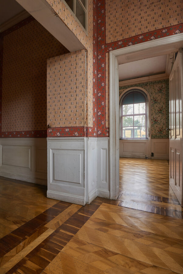 Das Schloss auf der Pfaueninsel steht momentan in vollkommener Leere – ein seltenes Bild. Während die Fassade des Schlosses in den letzten Jahren aufwendig rekonstruiert wurde, sind im Inneren behutsame Konservierungsmaßnahmen in sorgfältiger und feinfühliger Detailarbeit durchgeführt worden. Die Möbel kehren erst im April zurück, bis dahin herrschen Stille und eine fast magische Atmosphäre. Ein Blick in die Räume zeigt das Schloss so, wie man es nur selten zu sehen bekommt.