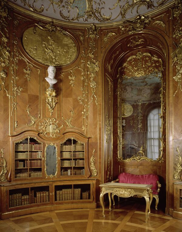 Die aus dem 17. und 18. Jahrhundert stammenden Buchtitel sind meist in französischer Sprache verfasst. Friedrich II. besaß in jedem Schloss, das er bewohnte, eine Bibliothek. Es finden sich in den verschiedenen Bibliotheken oftmals dieselben Werke seiner Lieblingsschriftsteller. Vertreten sind Werke der klassischen antiken Dichter, Philosophen und Geschichtsschreiber, zeitgenössische französische Literatur, insbesondere Voltaire, sowie viele weitere Wissenschaftsgebiete.