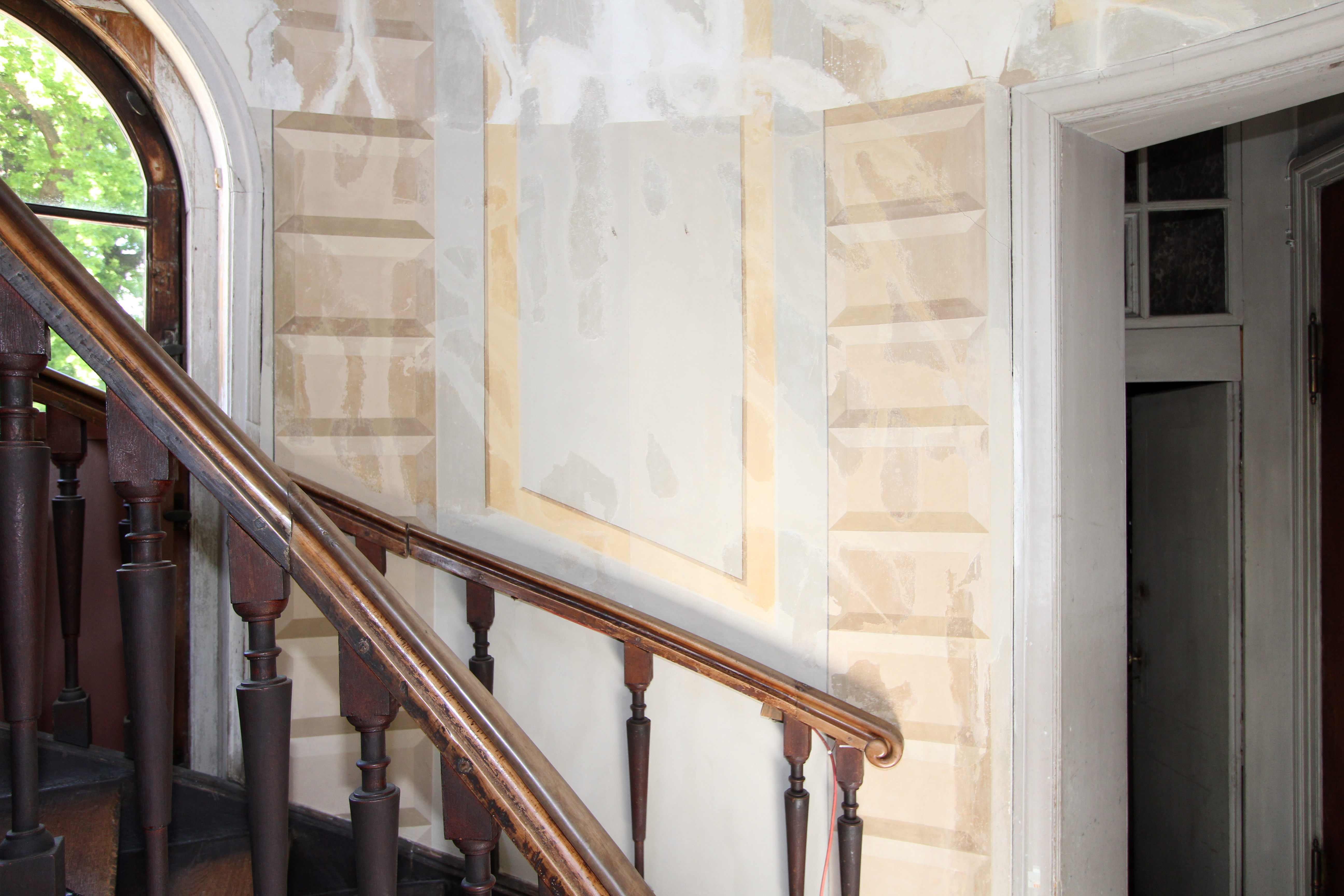 - Konservierungsarbeiten an den handwerklich und künstlerisch hochwertigen Oberflächen der Innenräume, den bedruckten Textil- und Papiertapeten, den Holzvertäfelungen, den Parkettfußböden, den geschnitzten Spiegelrahmen und der Malerei auf Putz
