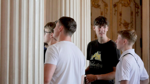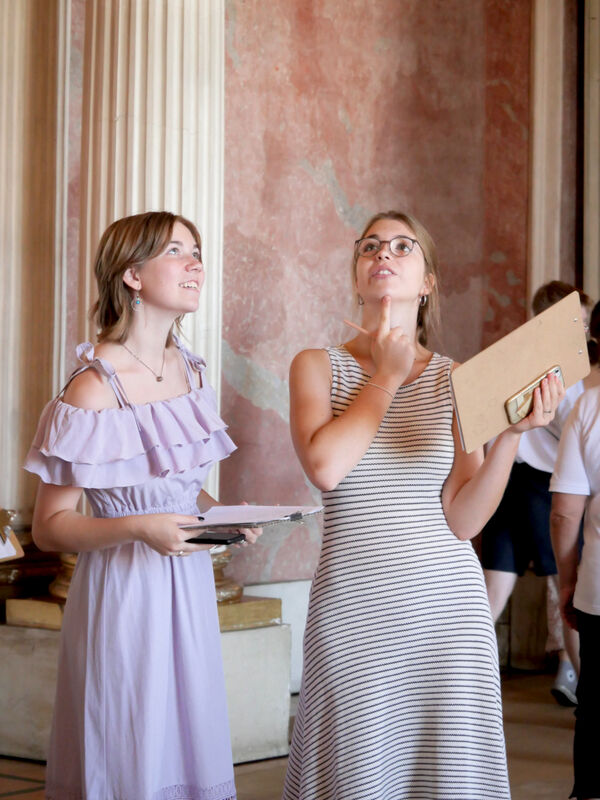 Im interaktiven Rundgang durch das Schloss erarbeiten sich die Schüler:innen eigenständig, welche Botschaften hinter den gestalterischen Entscheidungen im Neuen Palais stecken. Anknüpfend an das Lehrplanthema frühneuzeitlicher Staat/Absolutismus wird untersucht, wie Friedrich II. als König seine Macht ausdrückte.