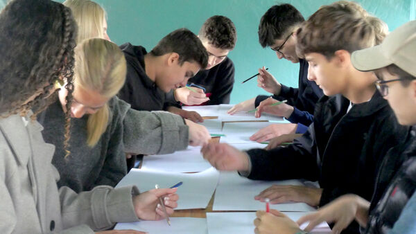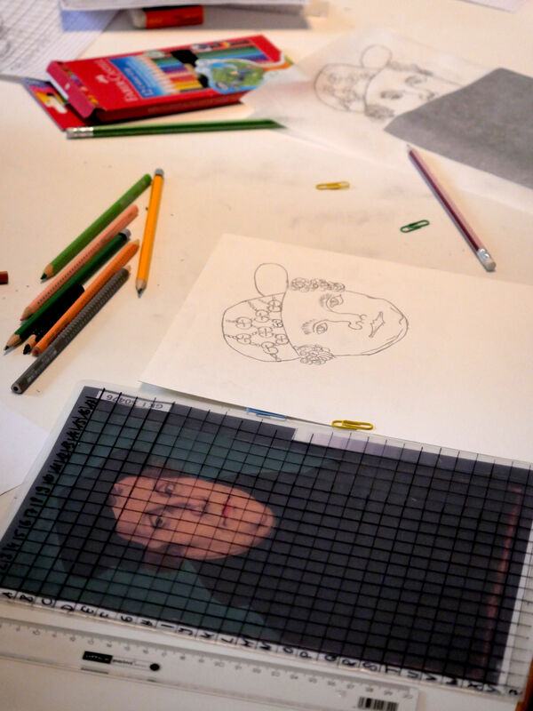 Beide Gruppen orientieren sich an Fragen von Vereinfachung, Wiedererkennbarkeit und Aussage. Zum Abschluss werden die Ergebnisse präsentiert und gemeinsam reflektiert. Je nach Schwerpunkt wird gezeichnet oder mit einfachen Druckverfahren gearbeitet.